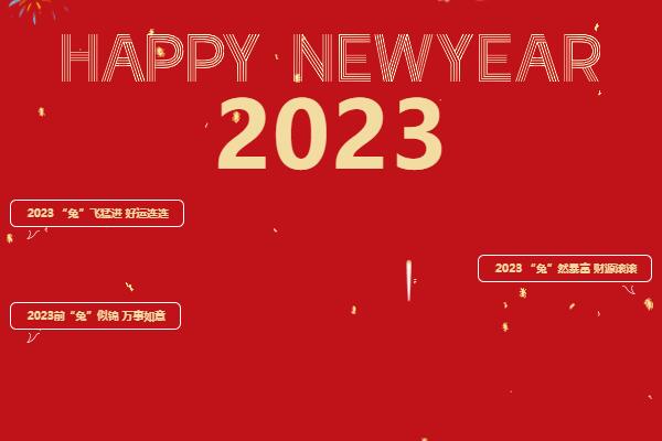 卯兔報喜新年好HAPPY NEW YEAR兔年大吉20232023 “兔”飛猛進 好運連連2023 “兔”然暴富 財源滾滾2023前“兔”似錦 萬事如意HAPPY NEW YEARHELLO 2023放假通知2023春節放假安排如下通知:1...